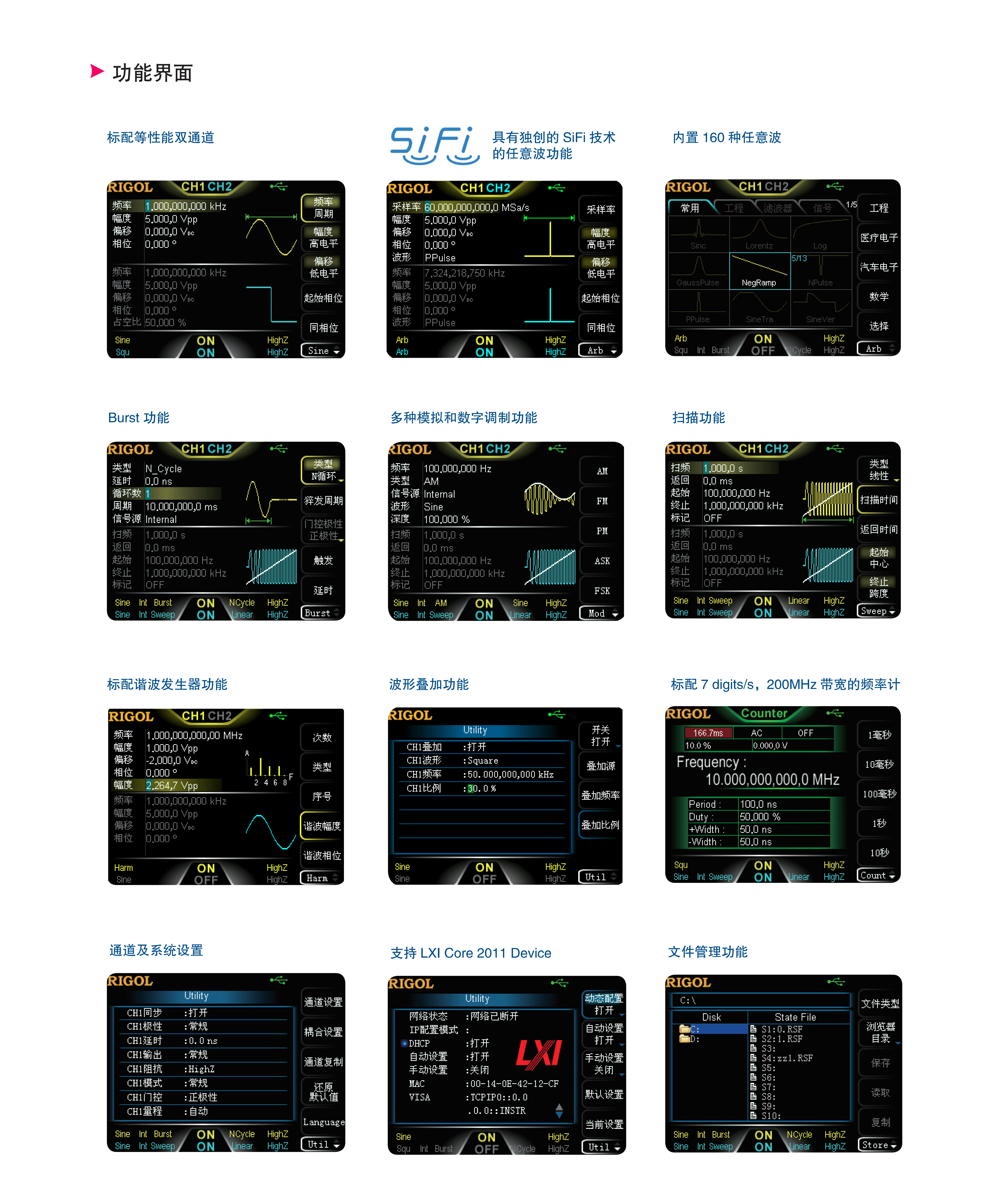 DG1000Z系列函数/任意波形发生器是一款集函数发生器、任意波形发生器、噪声发生器、脉冲发生器、谐波发生器、模拟/数字调制器、频率计等功能于一身的多功能信号发生器。多功能、高性能、高性价比、便携式等特点为教育、研发、生产、测试等行业提供了新的选择。